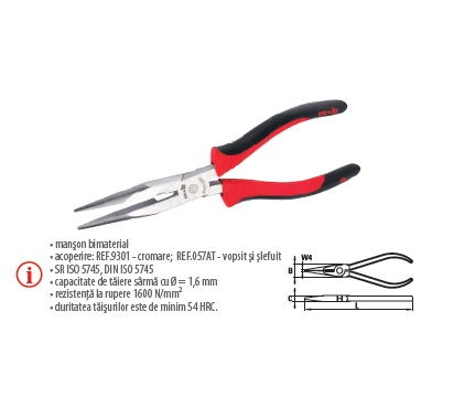 Cleşti AT cu vârf semirotund şi tăiş, manşon bimaterial 200