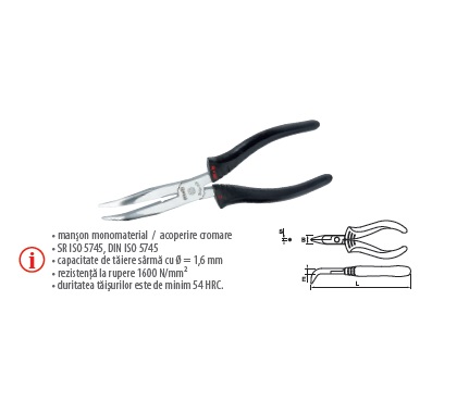 Cleşte BT cu vârf semirotund îndoit şi tăiş, manşon monomaterial