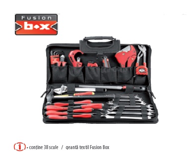 Trusă instalatori Fusion Box TEXTIL INSTALATOR conţine 38 scule si geantă textil Fusion Box